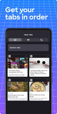 • See your open tabs as thumbnails or a list view.