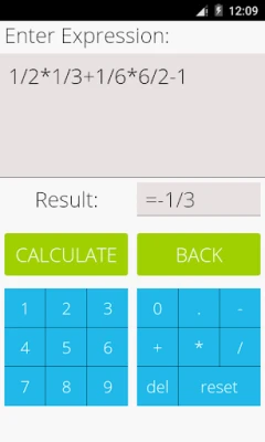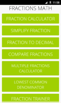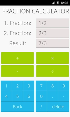 This math app is a fractions calculator with various functions:
