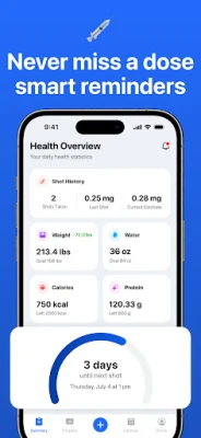 Pep was designed specifically for people using GLP-1 medications for weight loss and health. By keeping your shots, reminders, progress, and nutrition tracking all in one place, Pep removes the stress of managing your journey across multiple tools. You’ll stay consistent, avoid missed doses, and gain confidence seeing your progress.