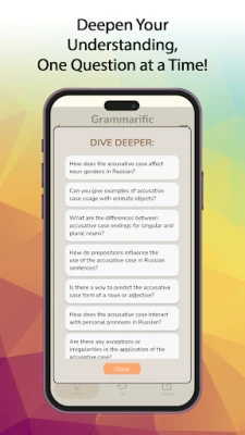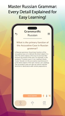 Plunge into the rich depths of the Russian language with "Grammarific Russian," the definitive app for mastering the complexities of Russian grammar. Whether you're beginning your journey or deepening your linguistic skills, our application provides an unparalleled learning experience tailored to every level of proficiency.