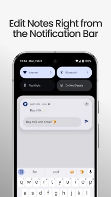 Install Push Note today and turn your notification bar into your personal productivity space.