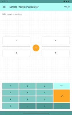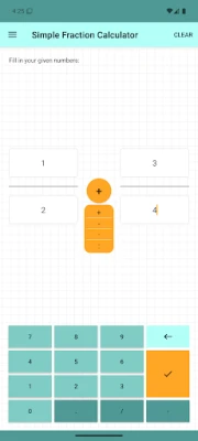 Easily add, subtract, multiply or divide two fractions with the Simple Fraction Tool. Enter four values to calculate results with decimals or fractions. Get clear step-by-step solutions for every math operation (subtraction, addition, multiplication, division). Calculations can be shared.