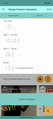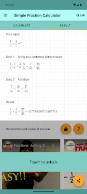 🔹 Key Features: - Addition, subtraction, multiplication and division fractions - Supports decimals, positive and negative numbers, and fractions - Detailed step-by-step solution for each calculation - Share the final solution